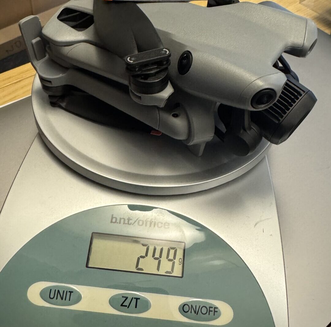 Vanlige vekter av den typen som vi kan kjøpe i vanlige butikker, vil tydeligvis gi forskjellig resultat. De er heller ikke formelt godkjente som vekt for slike tester, men i sosiale medier forteller mange eiere av Mini 5 at de har veid sin drone til 253 gram.