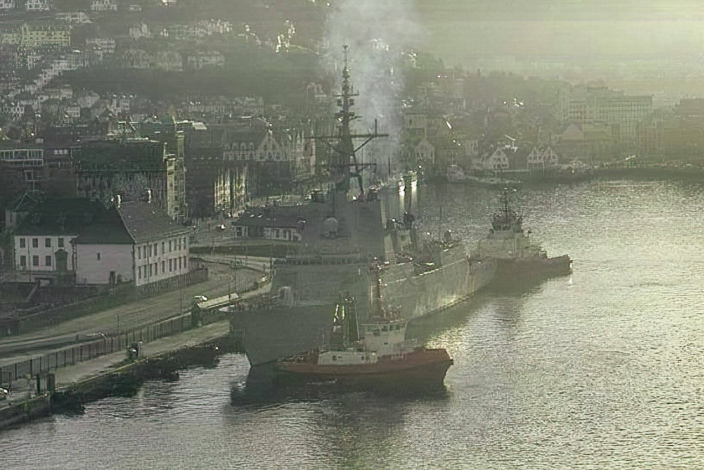 Bilder fra webkameraer viser at F219 Sachsen lå nedenfor Rosenkrantztårnet, Bymuseet i Bergen. Akterenden på skipet var nesten 700 meter fra Torgalmenningen, der yrkessjåføren startet dronen sin.