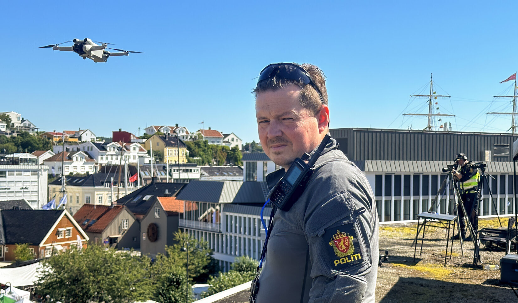 Jan Otto Johansen leder politiets antidroneenhet. Her er han fotografert på jobb under Arendalsuka i 2023. FOTO: Anders Martinsen.